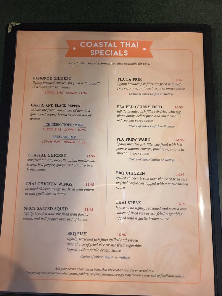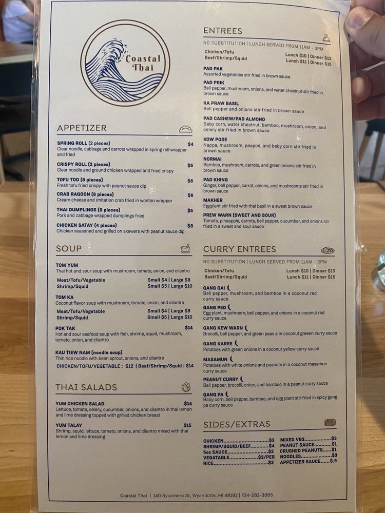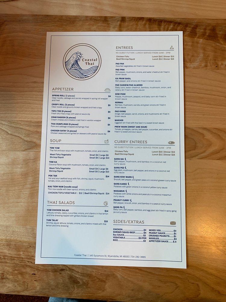Coastal Thai in Wyandotte, Michigan offers a delightful blend of traditional Thai flavors with a modern twist. The menu features popular dishes like Pad Thai and Pineapple Fried Rice, praised for their bursting flavors and generous portions. Customers rave about the attentive service, cozy ambiance, and reasonable prices. Standout items include the Crispy Chicken Rolls appetizer and the flavorful Curry Pad Thai. The restaurant is known for its quick service and friendly staff, creating a welcoming atmosphere for diners. Coastal Thai provides a memorable dining experience, making it a top choice for those seeking authentic Thai cuisine in the Detroit area.
